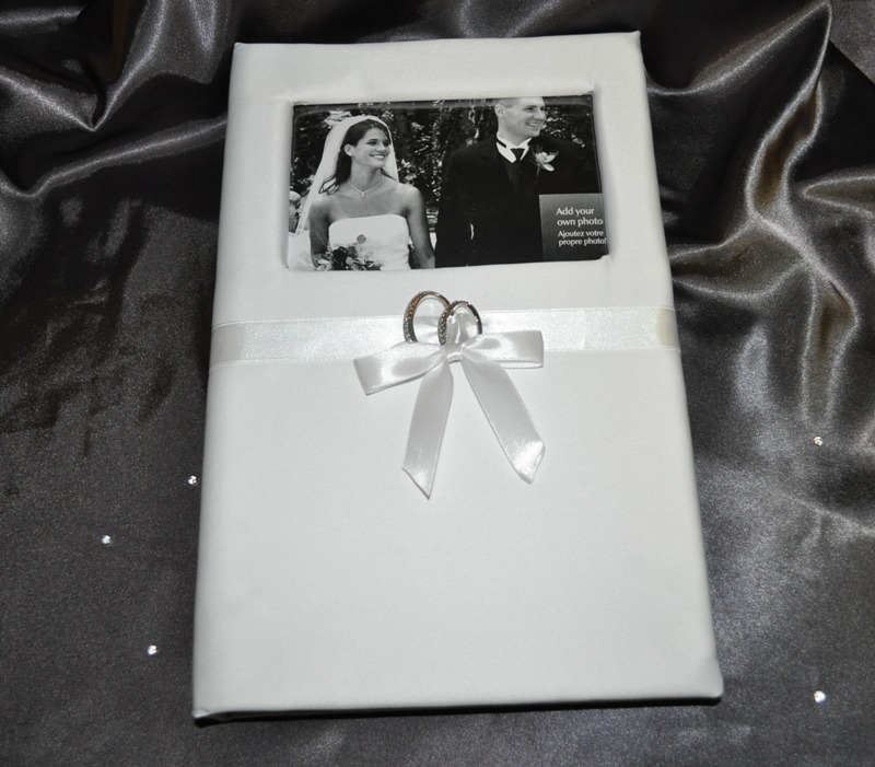 This quality wedding photo album is for those who want a lovely keepsake without a huge price tag. It is covered in quality white satin with a white satin ribbon and a diamante unity ring decal.