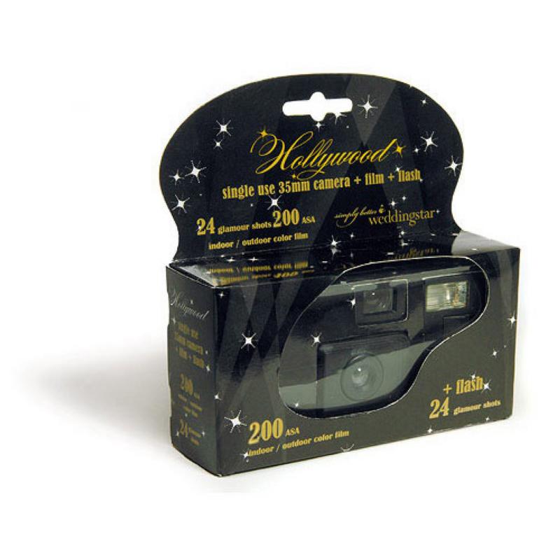 Lights, camera, action... Capture the special moments that are often missed by adding this camera to your festivities. Invite your guests to snap photos of the celebration or glamour shots of themselves. Group multiple cameras on a designated table or position a single camera alongside each centerpiece. Includes dramatic Hollywood inspired packaging. Each camera includes 200 ASA film and a flash that will allow picture taking indoor or outdoors on cloudy days or after dark (24 exposures). Hold that pose!